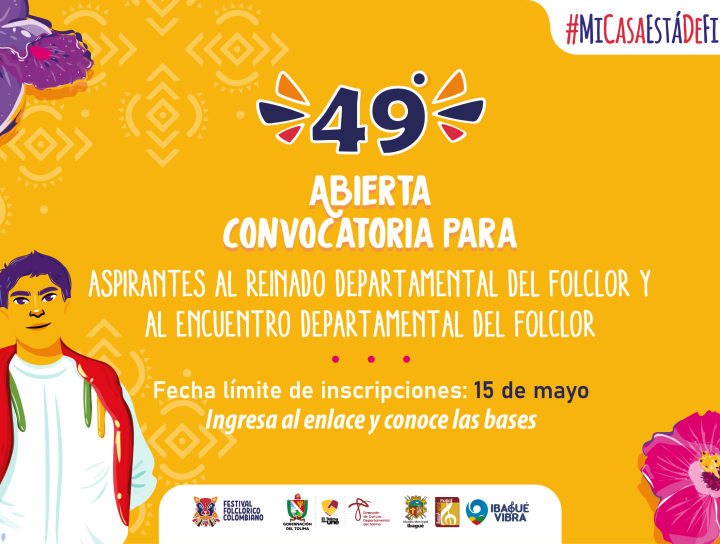 Hasta el 15 de mayo estarán abiertas las inscripciones para el Reinado y Encuentro Departamental del Folclor 2023, actividades que hacen parte del 49° Festival Folclórico Colombiano.